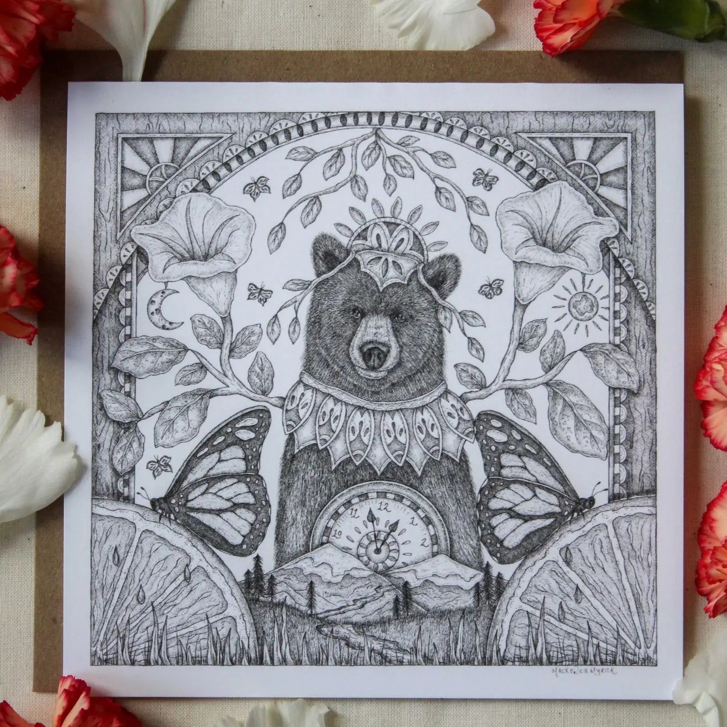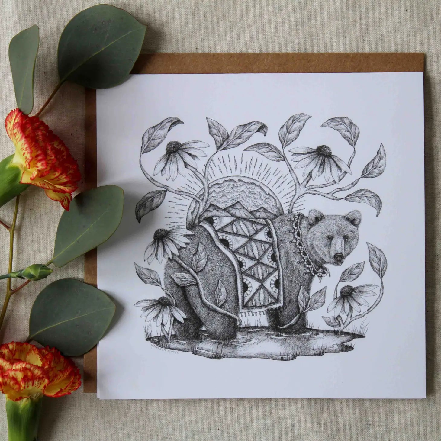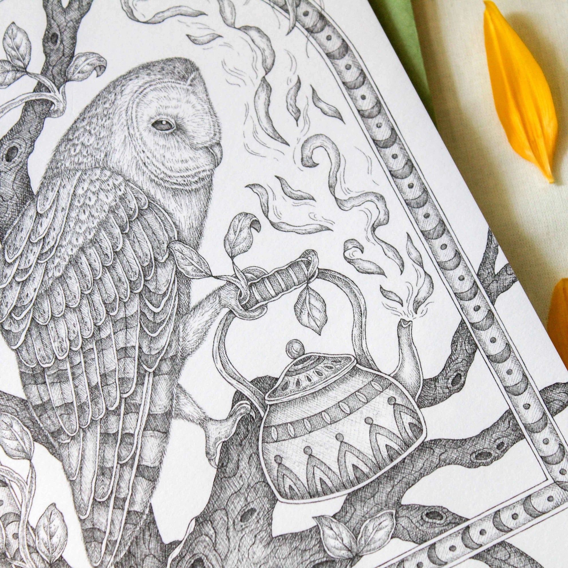 "I create whimsical pen and ink drawings rooted in nature and storytelling. My artwork and stories are grounded in reality, but they also live in a fantastical world where raccoons bring ice cream sundaes to parties and rabbits craft the most excellent olive oil throughout Europe."