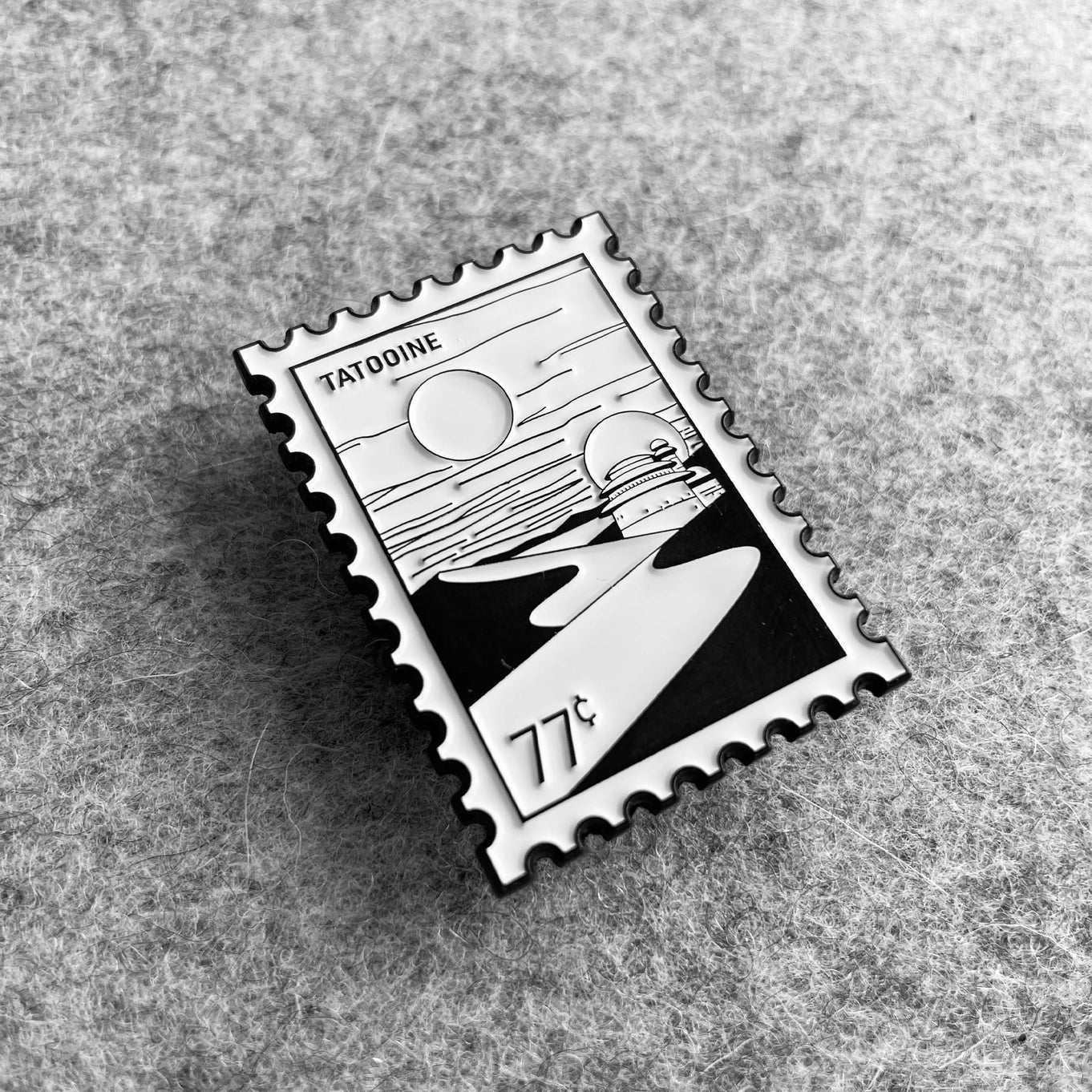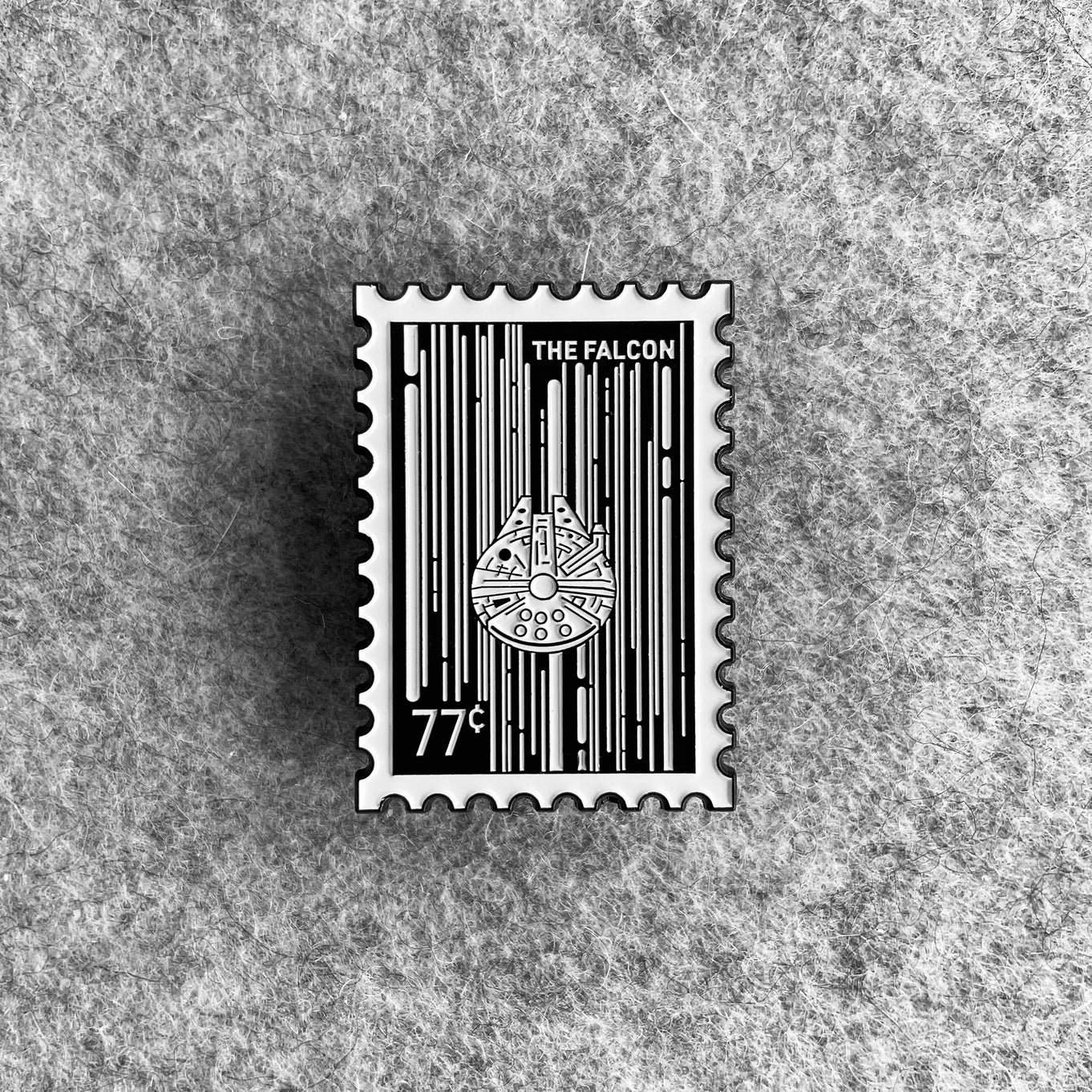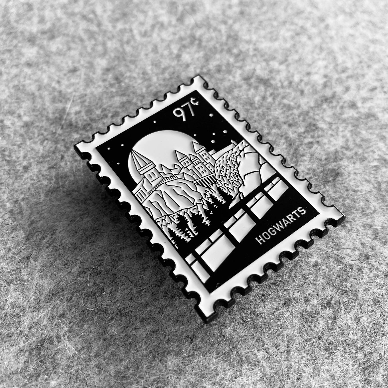 Beautifully crafted pins with themes from Start Wars and Superman, to Harry Potter, Dr. Who, X-Men and Miyazaki. You are sure to love these stamp-like black and white pins.