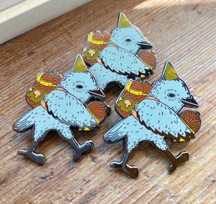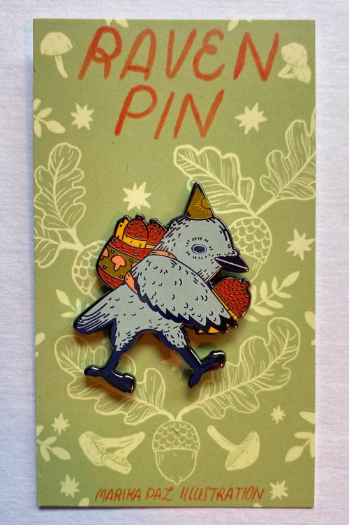 Raven the Acorn Collector Pin