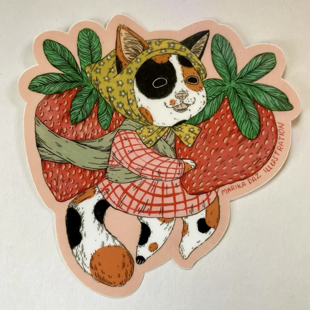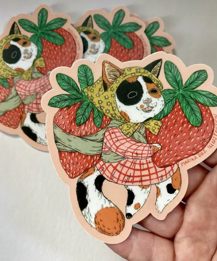 Strawberry Milkshake Cat Sticker