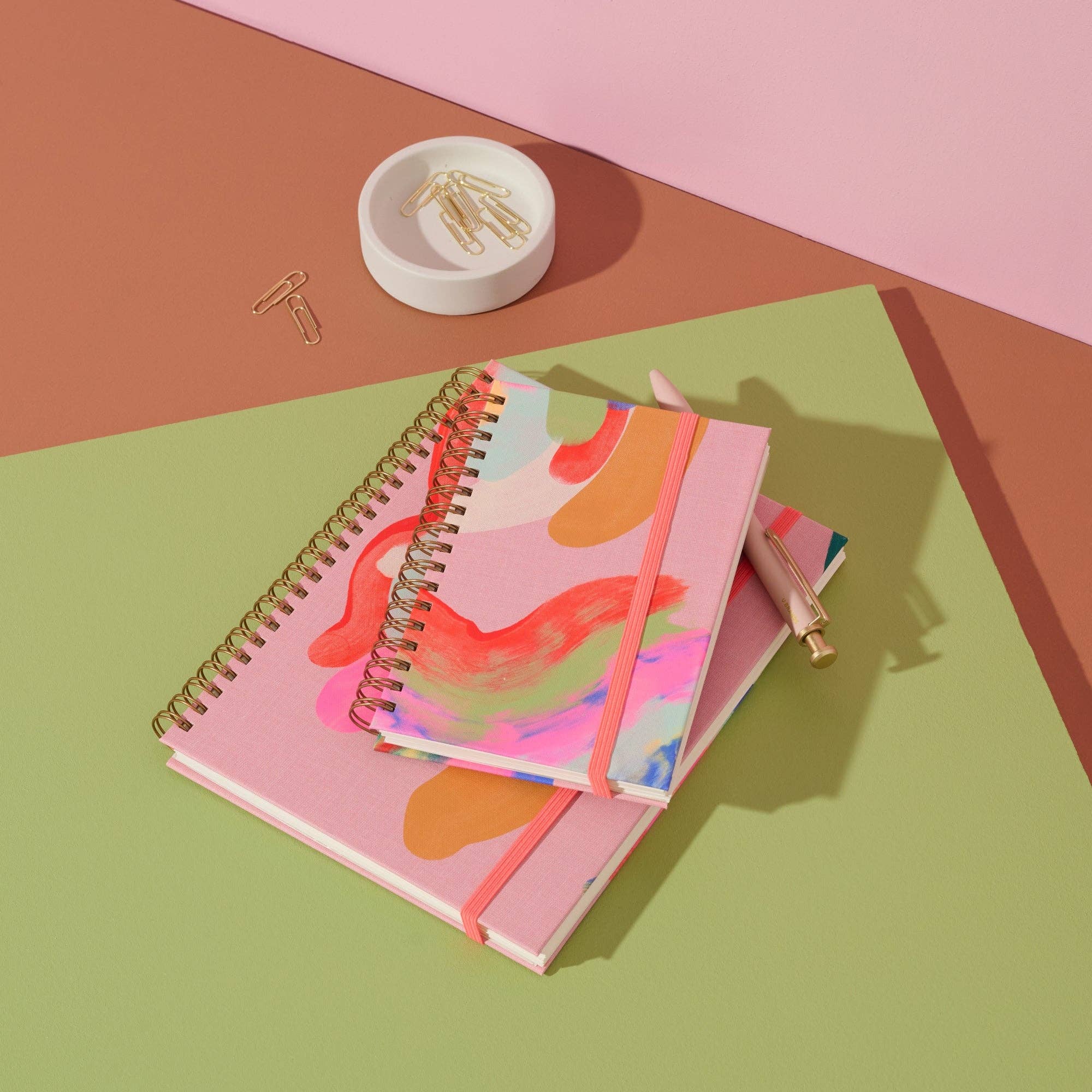 Moglea is a Des Moines, Iowa based studio that focuses on artful paper and home goods. Moglea's artful stationery is created by using hand-applied production processes to add one-of-a-kind elements to each product. The production team thoughtfully applies layers of paint to extra thick sheets of paper before cutting them down, yielding completely unique compositions. Each piece is finished on one of their antique presses where it is foil stamped, printed or die cut using traditional letterpress printing processes.