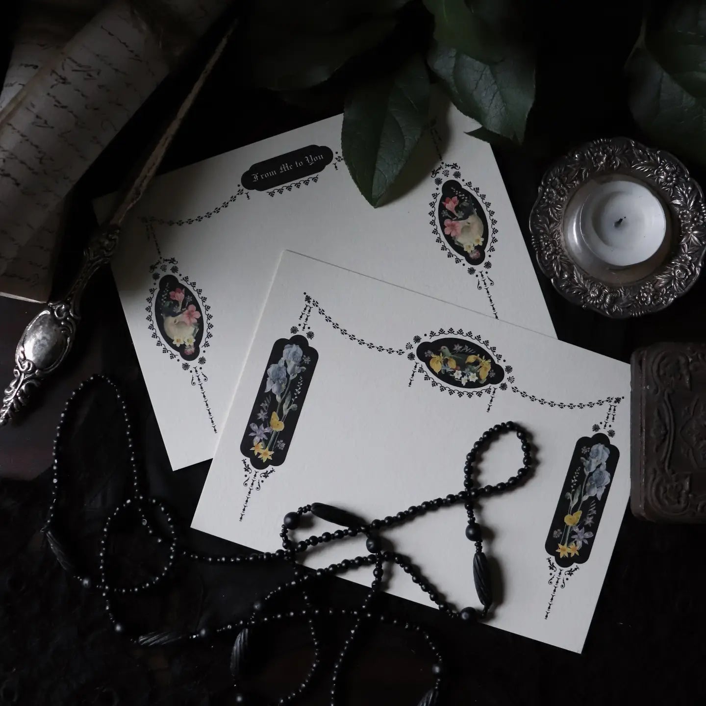 Black Bouquet Stationery Set