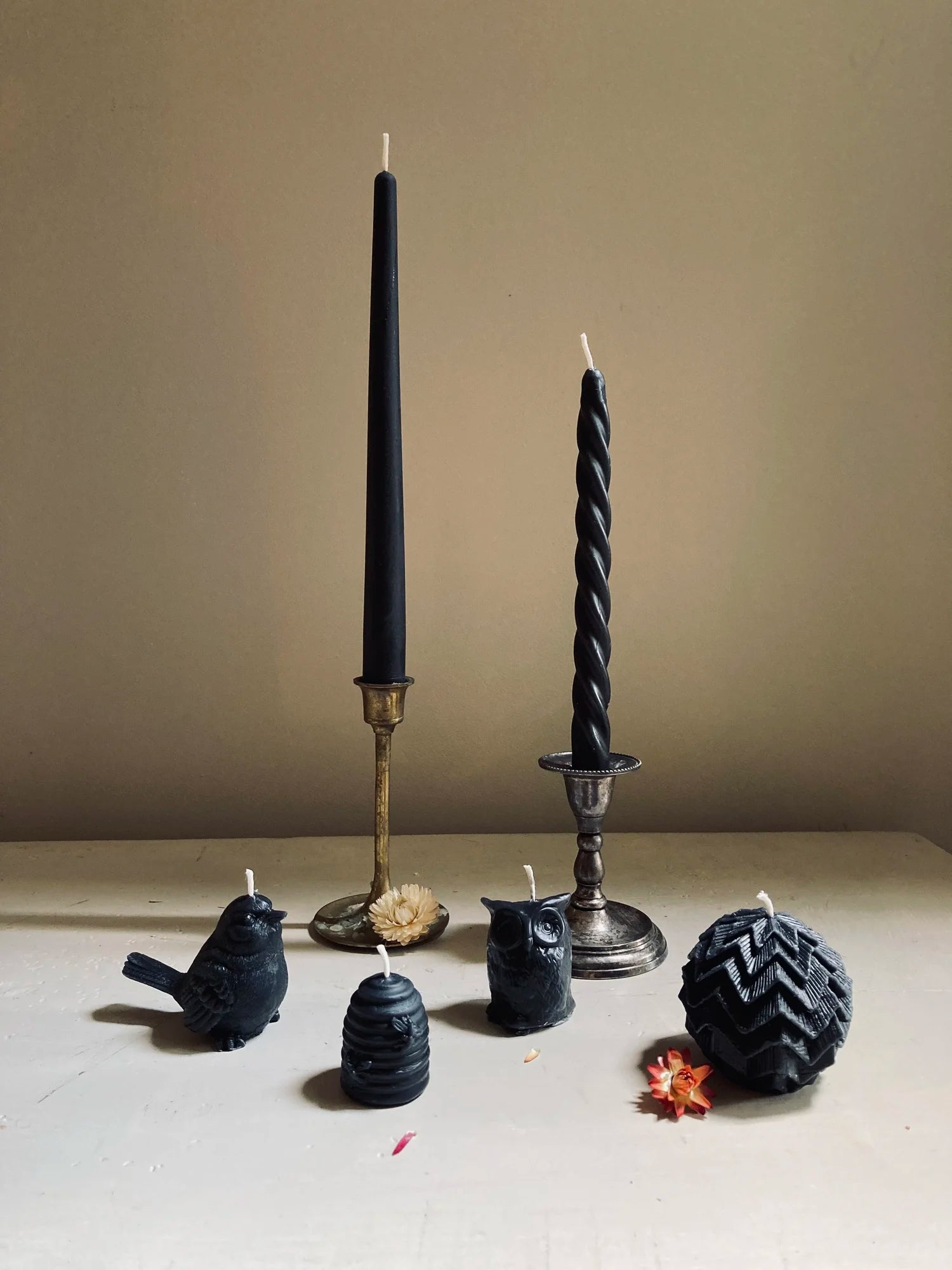 Curly Beeswax Taper Candles - Black